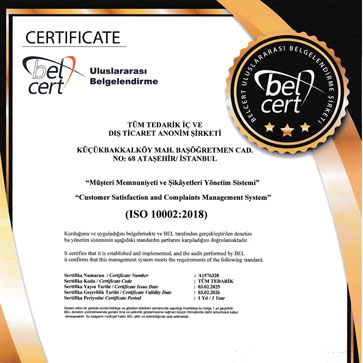 "Şirketimizin sahip olduğu kalite belgeleri ile ilgili detaylı bilgilere buradan ulaşabilirsiniz."