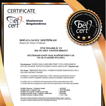 Tüm Tedarik Doğaya Sevgi Sertifikası
